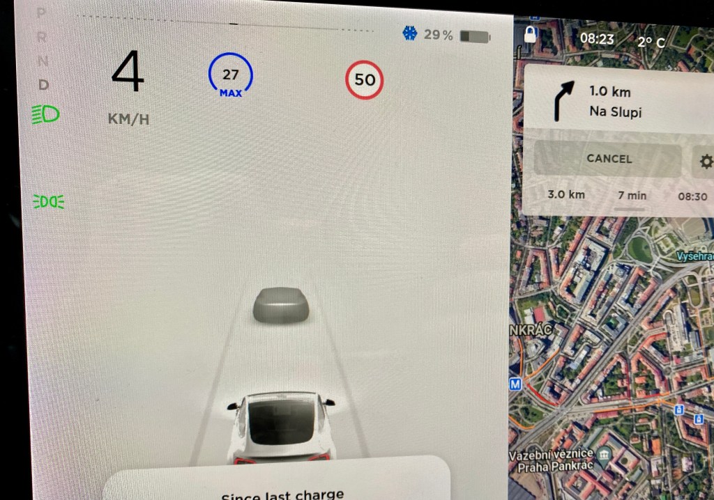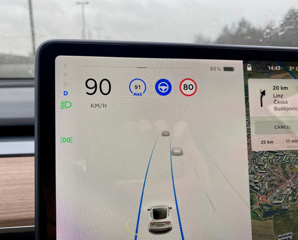 Čo je ale zaujímavé, že pokiaľ idete mimo mesta 90 km/h a máte zapnutú túto funkciu, tak po vstupe do mesta, či dediny sa vám rýchlosť automaticky zníži na predpísanú a vy nemusíte ručne znižovať rýchlosť. Tesla to spraví za vás. Dôležité ale je dodať, že to opať nefunguje na 100%, takže musíte byť stále ostražitý a sledovať si to.