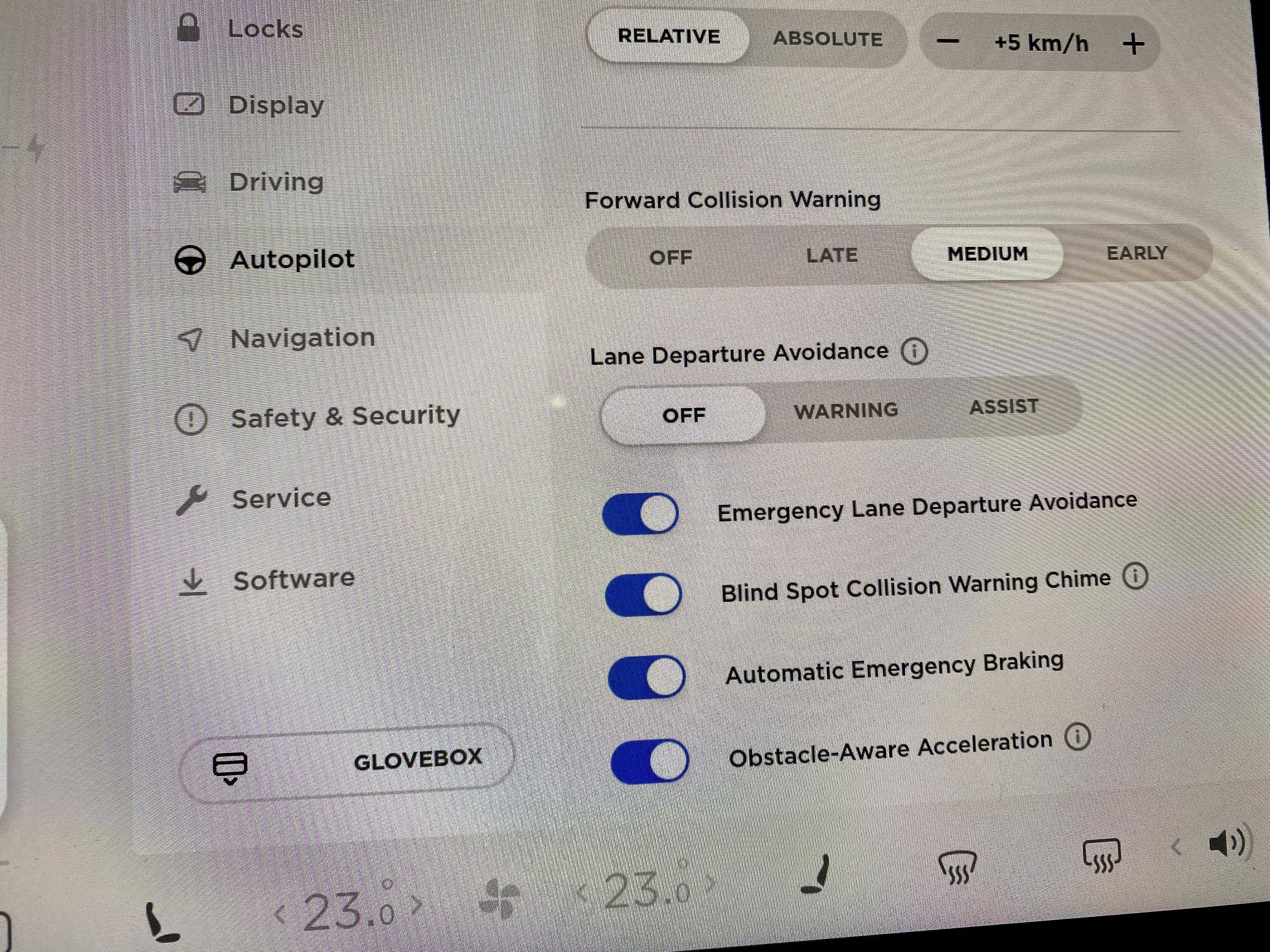 Toto je ďalšia funkcia, ktorú dostanete v základe aj bez FSD. Môžete si nastaviť, či vás len zvukovo upozorní, alebo v krajnom prípade auto aj zabočí tak, aby ste v pruhu zostali. Mám to väčšinu času vypnuté, takže to neviem presne zhodnotiť, do akej miery je táto funkcia použiteľná.