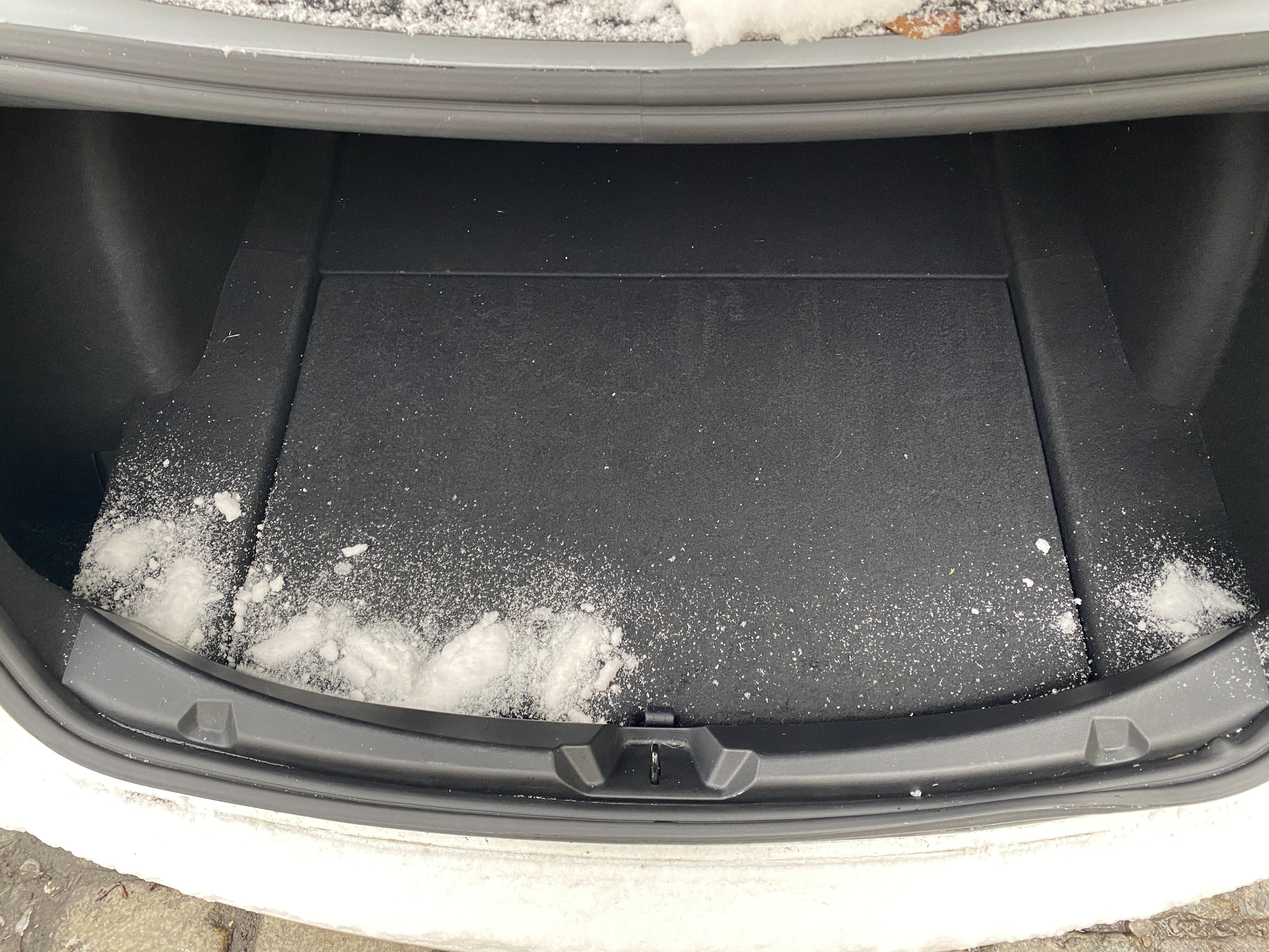 Pri veľkých mínusových teplotách vám vie primrznúť aj zadný kufor. Zatiaľ sa mi to nestalo vyložene tak, že by som ho neotvoril, ale treba počítať s tým, že vám to úplne dobre nepôjde a musíte ho trochu nasilu otvárať. Netuším ako to zvláda automatické otváranie kufru na nových Modeloch 3. Neviem si predstaviť, že ten jeden motorček zvládne otvoriť ten zadný kufor, ak je aspoň trochu primrznutý.